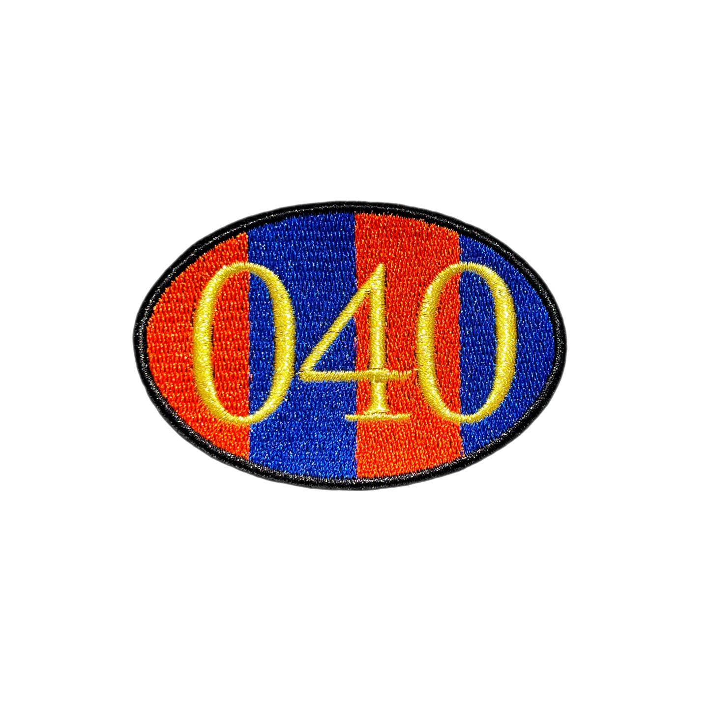 GEBORDUURD OVAAL EMBLEEM IN ORANJE BLAUW EN GOUD