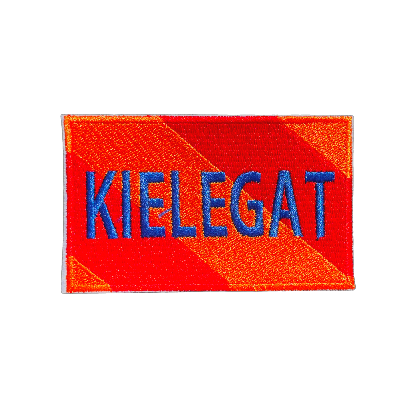 GEBORDUURD EMBLEEM IN ROOD EN ORANJE