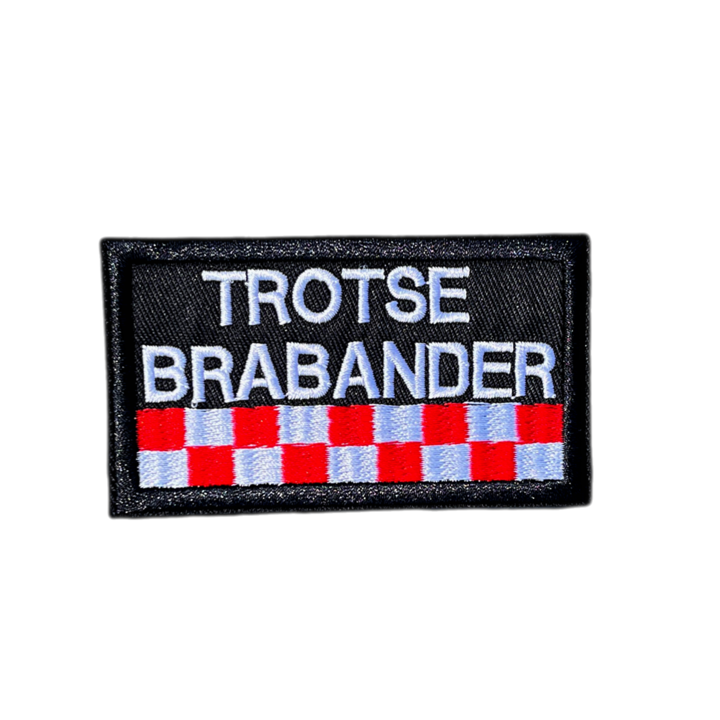GEBORDUURD EMBLEEM IN ZWART ROOD EN WIT